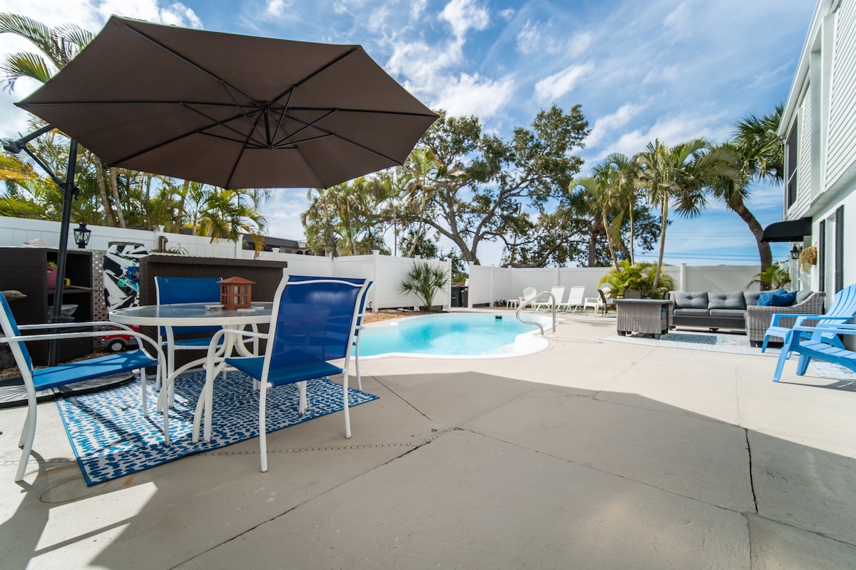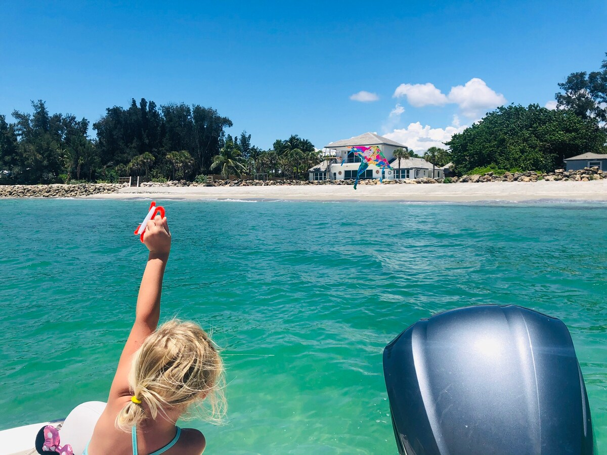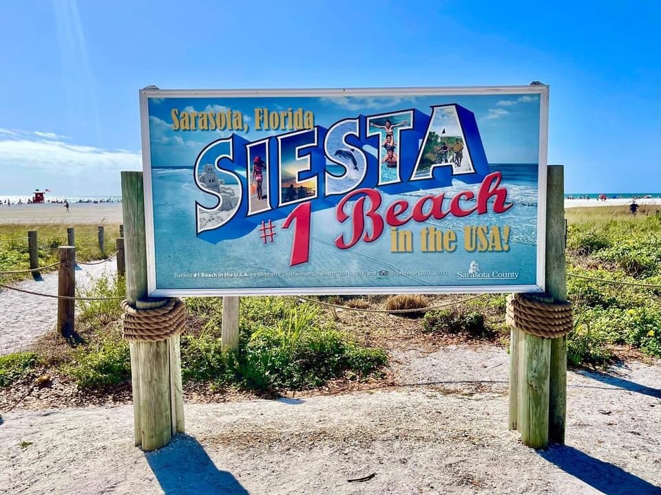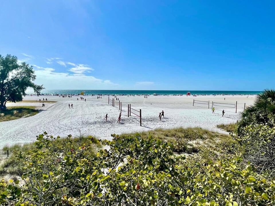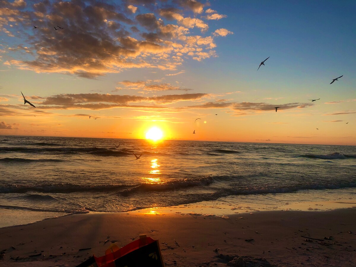 Just a 10 min walk from front door to sand in your toes on Crescent Beach on Siesta Key.