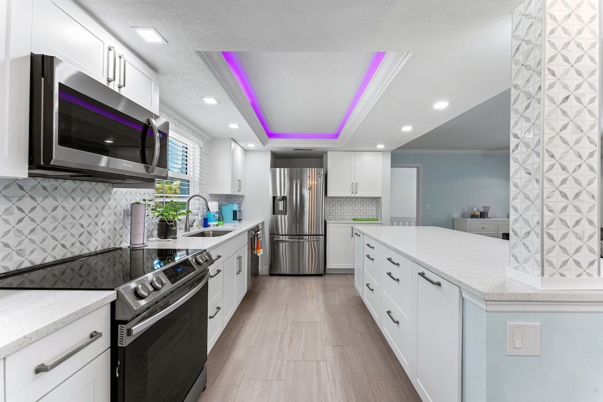 Kitchen: full kitchen with a dishwasher, disposal, range, microwave, and fridge freezer, as well as a toaster, keurig, and more!